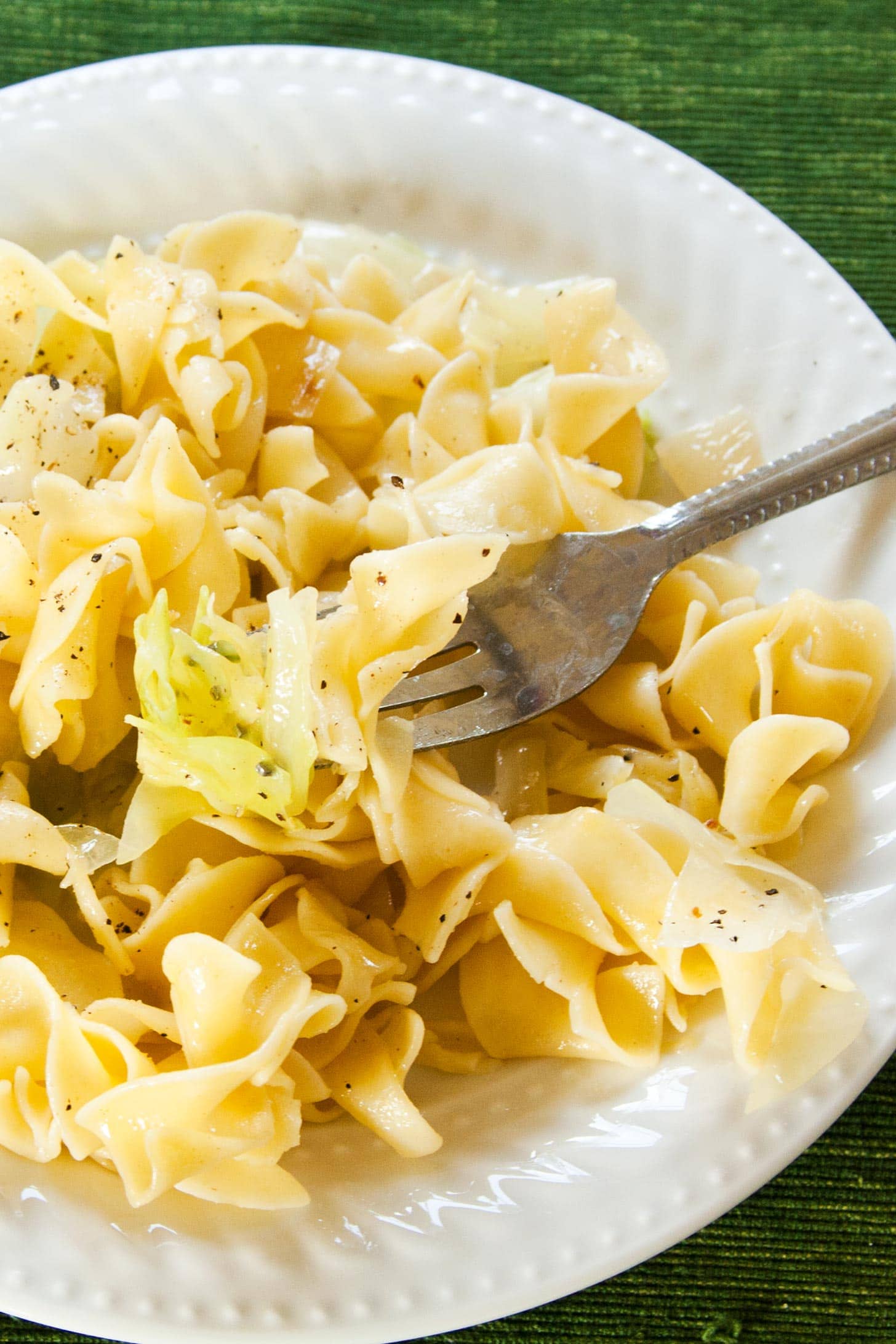 I am very excited about this recipe! I love cooked cabbage but don’t cook meat and so I never know what to eat it with. I love cabbage. I love noodles. I love butter. I love onions. Let’s go!
