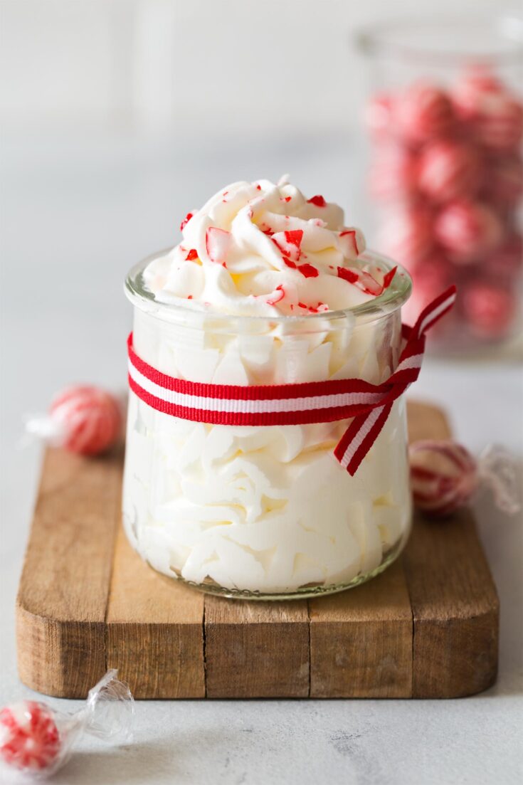 It’s homemade whipped cream made with only 3 ingredients including peppermint extract that gives it its cool and wintry flavor.